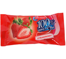 Салфетки влажные с аром. клубники 100% чистоты 15 шт.