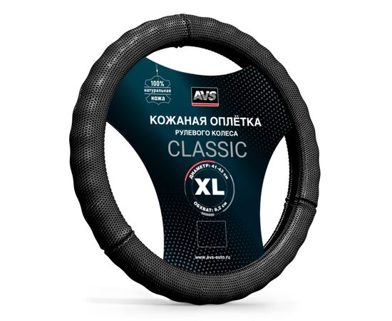 Оплетка на руль (нат. кожа) AVS (размер XL, черная)