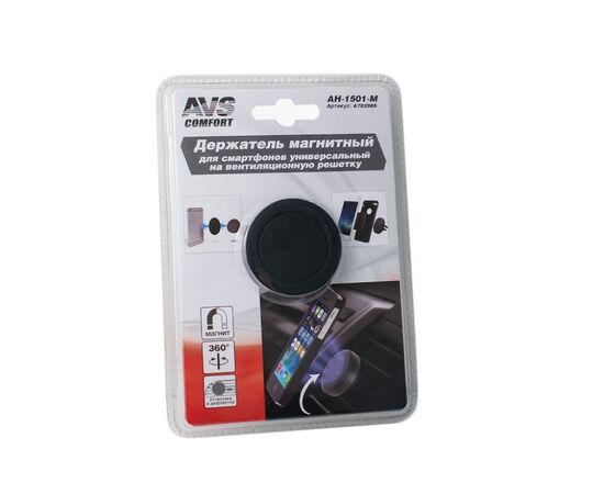 Автомобильный держатель AVS для мобильных устройств обеспечивает надежное крепление и при этом позволяет легко регулировать положение вашего телефона. В комплекте с магнитным держателем идут две металлические пластины разной формы и размера. Лёгкий монтаж на решётку вентиляции в автомобиле.