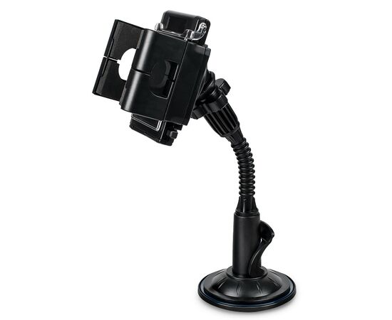 Универсальный держатель – удобный и простой в использовании. Предназначен для устройств шириной от 38 до 95 мм. Легко и надёжно крепится к лобовому стеклу или приборной панели, при помощи вакуумной присоски. Конструкция всех подвижных частей позволяет закрепить держатель на разном расстоянии от стекла и под любым углом, чтобы держать устройство в поле своего зрения. Амортизирующие вставки поглощают вибрации и надёжно фиксируют устройство.