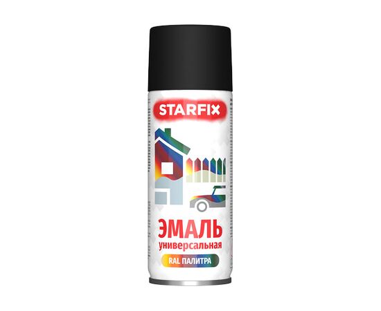Краска-эмаль аэроз. универсальная черный матовый STARFIX 520мл (9011)