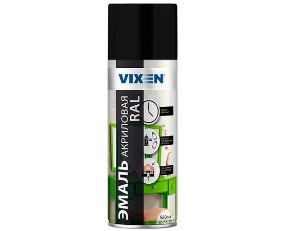 VIXEN Эмаль акриловая VIXEN RAL, черный янтарь (RAL 9005), аэрозоль 520 мл.
