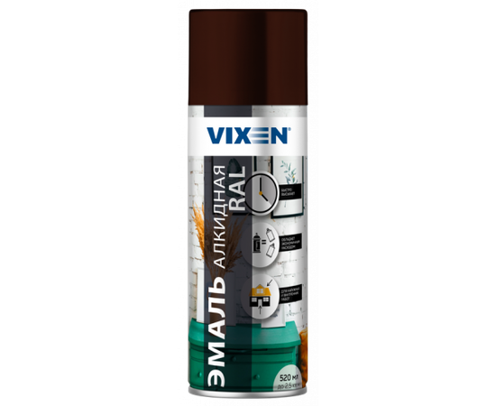 VIXEN Эмаль алкидная RAL, шоколадно-коричневый (RAL 8017), аэрозоль 520 мл.