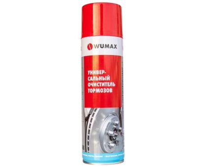 Универсальный очиститель тормозов 500 мл WUMAX для очистки и обезжиривания при техническом обслуживании ремонте легковых, грузовых автомобилей, а также узлов и агрегатов механизмов и машин. Быстрое и эффективное удаление маслянистых/жировых остатков, сажи, тормозной пыли и масляных остатков с автомобилей, дисковых и барабанных тормозов, картеров двигателя, коробки передач и т.д. Очищает диски и барабаны тормозов, детали сцепления, поверхности перед склеиванием или нанесением герметика, удаляет масла, жир и грязь.