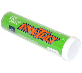 Клей холодная сварка АМЕТИСТ универсальный: - материалы для склеивания: металл, стекло, керамика, бетон, оргстекло, пластик; - водостойкий; - для внутренних работ; - количество компонентов: двухкомпонентный ; - конечная прочность 120 кг/см².