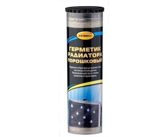 Герметик радиатора ASTROhim® надежно и быстро устраняет течи радиатора, отопителя и прочих элементов системы охлаждения, при условии, если повреждения не слишком значительны. Одинаково эффективен для латунных и алюминиевых радиаторов. Совместим со всеми типами охлаждающих жидкостей, не нарушает их химический баланс. Безопасен для всех типов шлангов и прокладок. Не забивает каналы радиатора. Один флакон рассчитан на систему охлаждения объемом до 8 л.