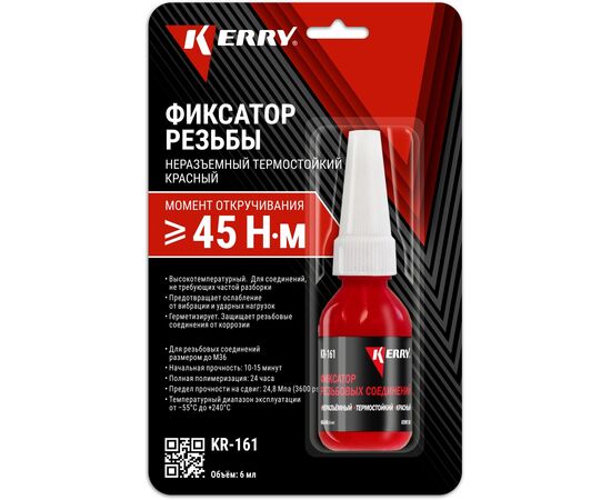 Фиксатор резьбы KERRY неразъёмный термостойкий (красный) 6мл
