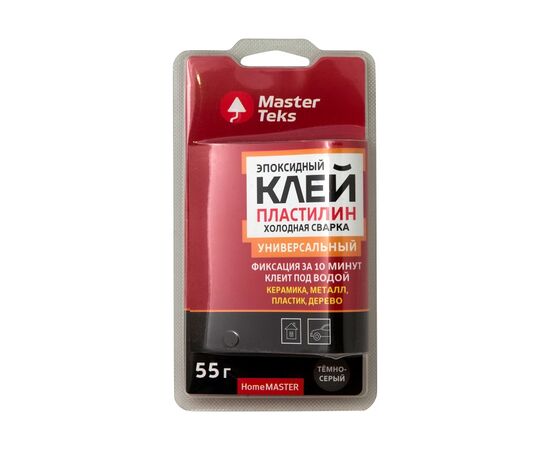 Клей-пластилин эпоксидный MasterTeks HomeMASTER холодная сварка УНИВЕРСАЛЬНЫЙ 0,55, темно-серый. Подходит для быстрого и надежного склеивания, ремонта деталей и узлов, герметизации соединений и емкостей, для восстановления утраченных фрагментов изделий из черных и цветных металлов,пластмасс,керамики,дерева в различных комбинациях. Очень быстрая фиксация за 10 минут. Подходит для влажных и замасленных поверхностей. Клеит даже под водой.Температура применения до минус 10С. Температура эксплуатации от минус 60С до плюс 150С.