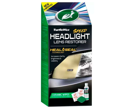 Восстановитель фар Turtle Wax Speed Headlight Lens Restorer новый улучшенный комплект для восстановления фар с улучшенной, более мощной формулой, которая быстро удаляет окисление и обновляет старые пожелтевшие фары до состояния новых без использования специального оборудования. Комплект 3-в-1 для улучшения четкости, видимости и яркости фар. Он значительно улучшает качество света фар, удаляя окисление, которое препятствует прохождению света. Новые керамические акриловые салфетки помогают закрепить результат на срок до 12 месяцев.