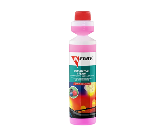 - Омыватель стекол KERRY® KR-337 (Аромат лесных ягод), благодаря содержанию комплекса поверхностно-активных добавок, быстро и эффективно удаляет дорожную грязь, масляные пятна, следы насекомых, птичий помёт, смолу растений