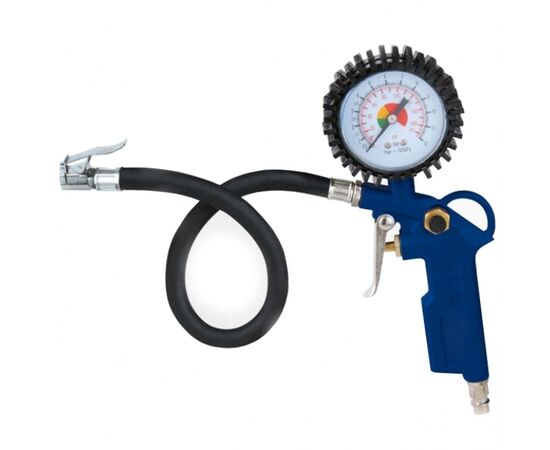 Пневматический пистолет для накачивания колес с манометром служит для контроля давления при подкачивании колес и других емкостей.