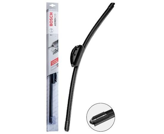 Бескаркасная щетка стеклоочистителя BOSCH AeroEco применяется для очистки стёкол автомобиля от снега, дождя и прочих загрязнений. Особое антифрикционное покрытие резинок обеспечивает доступ даже к самым маленьким каплям. Дворники плотно прилегают к стеклу, а давление распределяется по всей длине. Технология двухкомпонентной резины, которая запатентована компанией Bosch, в разы повышает качество очистки. Высокие аэродинамические характеристики обеспечиваются бескаркасной конструкцией стеклоочистителя. Длина дворника составляет 380 мм.