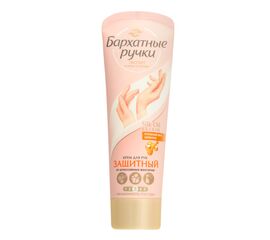 Бренд Бархатные Ручки представляет крем для рук Защитный, разработанный для экстразащиты кожи рук при воздействии агрессивных факторов среды[1]. Крем имеет текстуру средней плотности для повышенной защиты. В составе крема - новейшая формула Silk Oil Elixir с микро-маслами и протеинами шелка,...