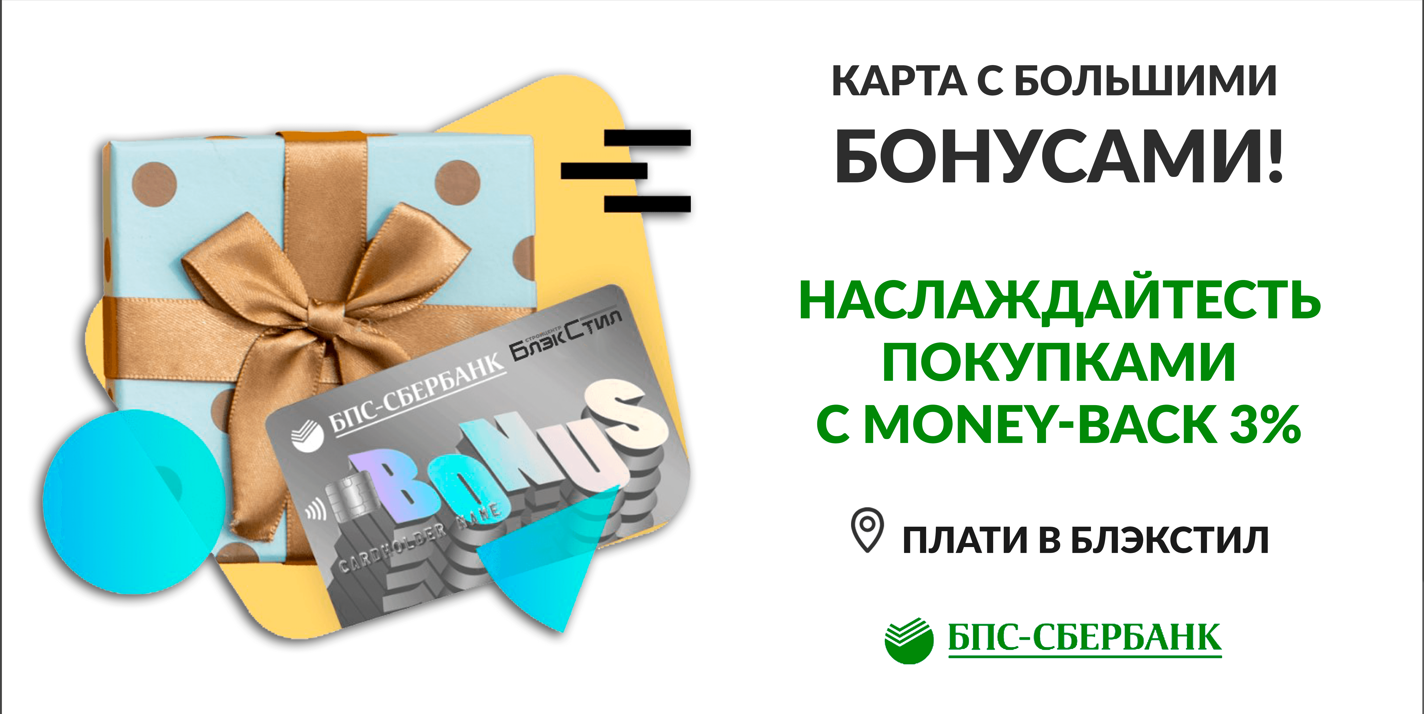 На товары, приобретённые по карте с большими бонусами БлэкСтил Visa, действуют акции и скидки.
