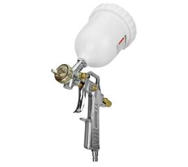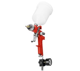 Универсальный краскопульт для выполнения широкого спектра малярных работ. Преимущества: верхний пластиковый бак 600 мл; регулировка подачи материала; регулировка факела распыла; сопло 1,4мм; легкий вес; быстросъемное соединение; регулятор давления с манометром....