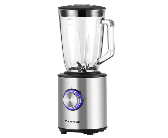 чаша 1.5 л, ножи из нержавеющей стали, пластиковая крышка чаши, отверстие в крышке для подачи доп. ингредиентов