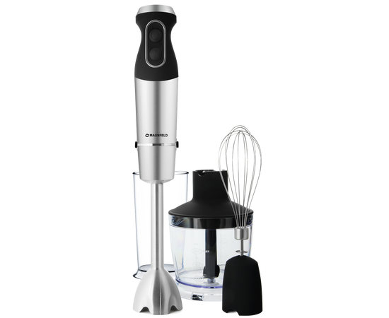 погружная насадка из нержавейки, 2 ножа из нержавейки, венчик из нержавейки, 500 мл измельчитель многофункциональный (чаша), мерный стаканчик 600 мл