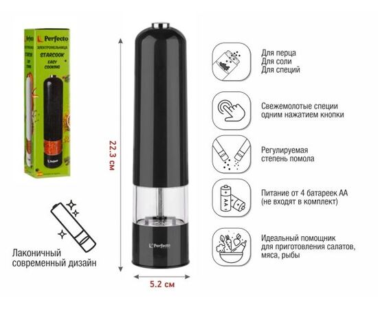 Электромельница, 5.2х22.3 см, чёрная, STARCOOK, PERFECTO LINEA