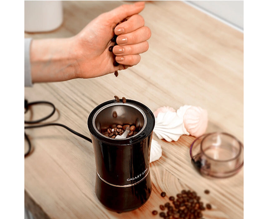 Кофемолка Galaxy Line GL0907 - стильный современный прибор для перемалывания зерен кофе.Лезвия ножа из высококачественной нержавеющей стали измельчают кофейные зерна максимально быстро и эффективно.Дополнительным преимуществом этой модели является контейнер из нержавеющей стали марки 18/10.Такая конструкция значительно долговечнее в использовании, чем пластиковая.Кофемолка GL0907 оснащена защитой от произвольного пуска, препятствующей включению при незафиксированной крышке.