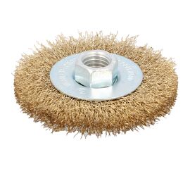 Дисковая щетка с латунной проволокой Резьба M14 Для легкой и средней очистки Для удаления остатков резины, окалины и сварных швов.
