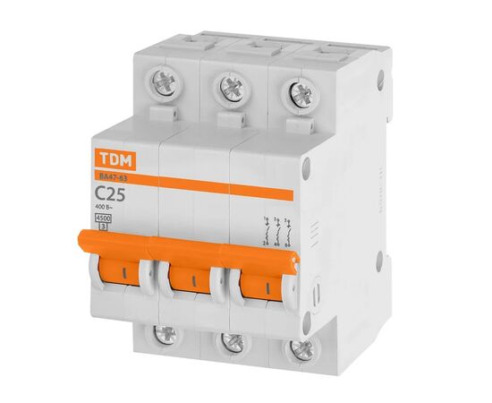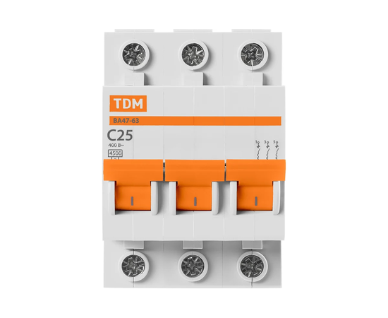 - Установка автоматического выключателя TDM ВА47-63 3Р 25А SQ0218-0021 осуществляется в любом положении;