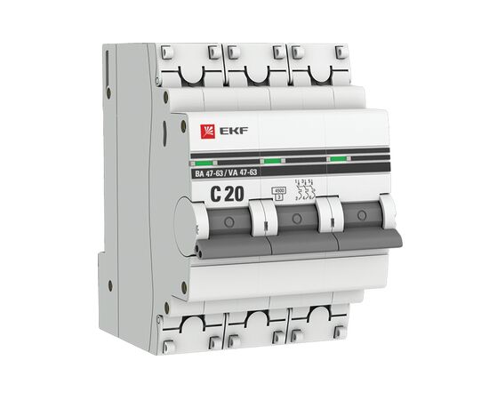 Автоматический выключатель 47-63 3Р 20А (C) 4,5 кА, EKF PROXIMA