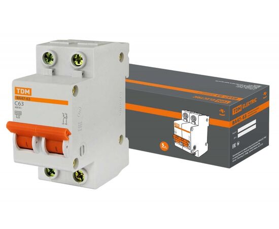 Автоматический выключатель TDM ВА47-63 2Р 63А 4,5кА х-ка С 6/60 SQ0218-0016