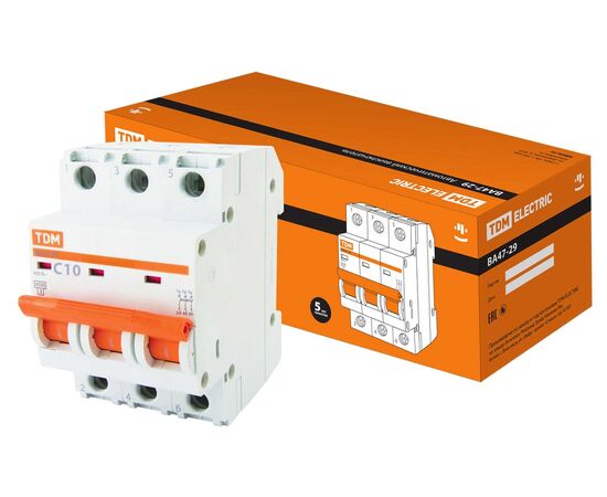 Автоматический выключатель ВА 47-29 3Р 10А 4,5 кА х-ка С TDM