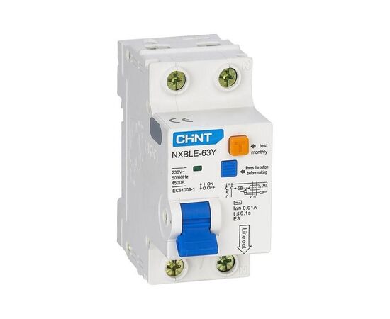 Дифференциальный автомат NXBLE-63Y — это компактное модульное устройство с отключающей способностью 4500 А. Оно рассчитано на номинальные токи от 6 А до 63 А.