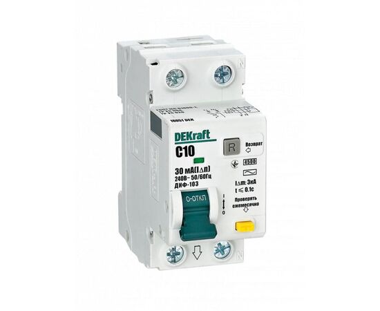 Выключатель автомат.дифференц. тока 2п (1P+N) C 10A 30мА тип АС 4.5кА ДИФ-103 DEKraft 16051DEK