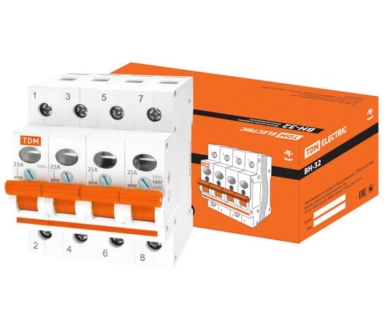 Выключатель нагрузки (мини-рубильник) ВН-32 4P 25A TDM