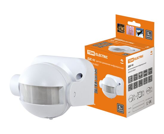 Датчик движения настенный ДДС-02 1100Вт, 5-480с, 12м, 5+Лк, 180гр, IP4