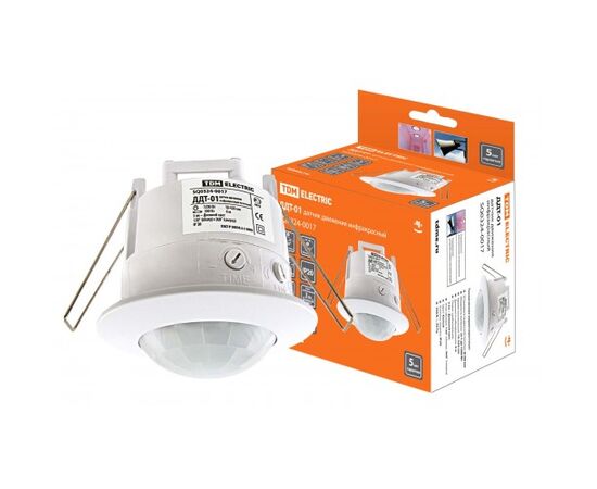 Датчик движ.точечный ДДТ-01 1200Вт, 10-420с, 6м, 3+Лк, 120(сбоку)+360(сверху)гр, IP20, ТДМ 1/50