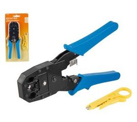 Особенности: Возможность легкой опрессовки большинства разъемов RJ-45 (8P8C), RJ-12 (6P6C), RJ-11 (6P2C и 6P4C). Встроенные ножи для зачистки и обрезки кабеля. Храповый механизм для качественной опрессовки. Корпус выполнен их высокопрочной стали. Возвратный механизм для...