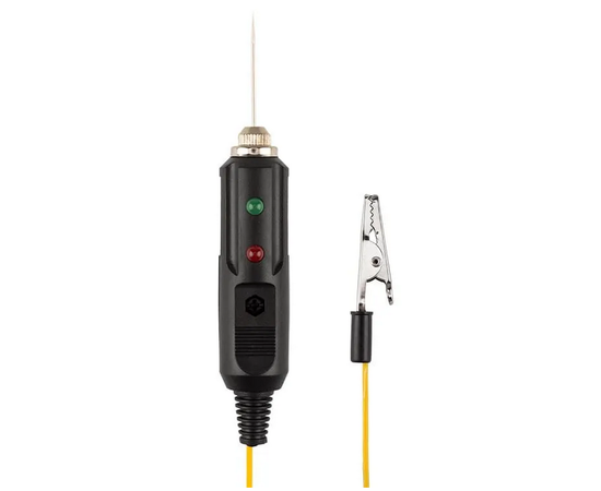 Автотестер универсальный черный (ИГЛА) REXANT предназначен для быстрой и эффективной диагностики электрооборудования автомобилей.Позволяет определить полярность напряжения (+/-), выявить замыкание и обрыв проводки без необходимости размыкать проводку - за счет возможности ввести тонкую иглу непосредственно через изоляцию в проводку или проверить предохранители, лампочки и диоды. Корпус выполнен из ударопрочного пластика и снабжен проводом с зажимом типа «крокодил», светодиодным и звуковым индикатором.Питание: 3 х LR 41