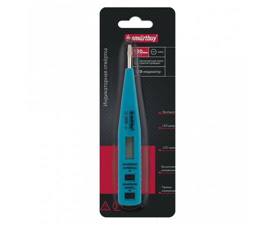 Индикаторная отвертка (пробник) 130 мм, до 250 В, шлиц., ЖК диспл:12,36,55,110,220В, Smartbuy tools