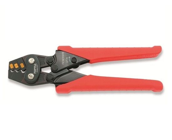 Клещи зажимные TOPTUL изготовлены из высокопрочной закаленной стали и предназначены для опрессовки не изолированных клемм на провода с площадью поперечного сечения 1,25 мм, 2 мм и 3,5 мм. А удобные ручки с анти-скользящим покрытием обеспечивают надежный хват инструмента. Рекомендуется для профессионального использования.