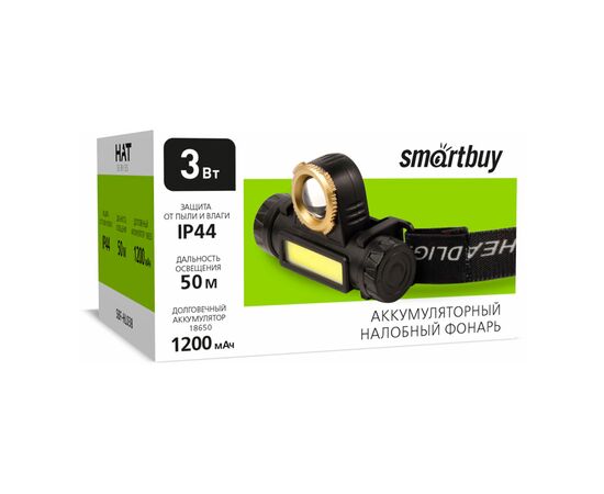 Аккумуляторный налобный фонарь 3Вт LED+3Вт СОВ, черный (SBF-HL038)