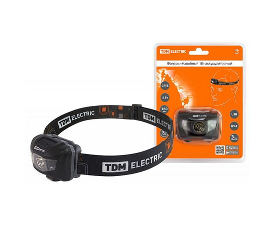 Фонарь «Налобный 10» аккумуляторный, 5 Вт 1 светодиод CREE, Li-Ion 3,7 В 0,6 А*ч, USB, сенсор, TDM