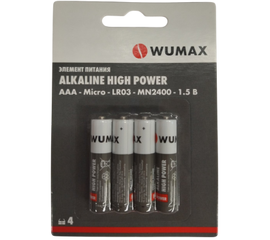 Элемент питания Alkaline high power ААА/LR03-1,5B,щелочной WUMAX (4шт/уп)