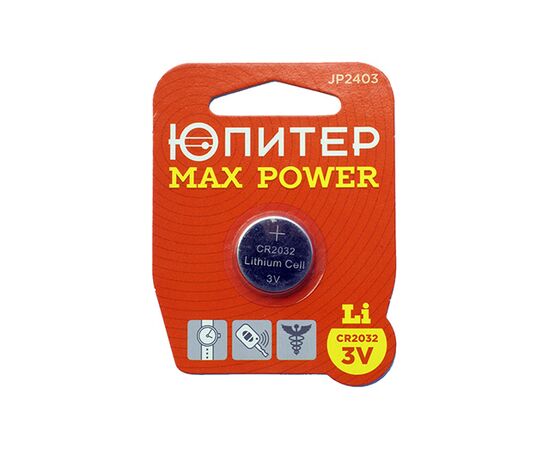 Батарейка CR2032 3V lithium 1шт. ЮПИТЕР MAX POWER