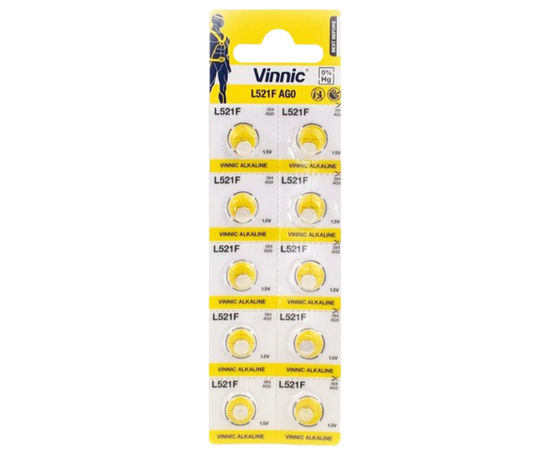 Батарейка щелочная VINNIC L521 (AG0, 379) \ 1шт