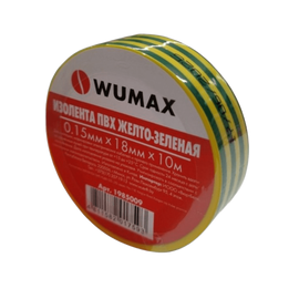 Изолента желто-зеленая 18мм х 0,15 х 10м, WUMAX