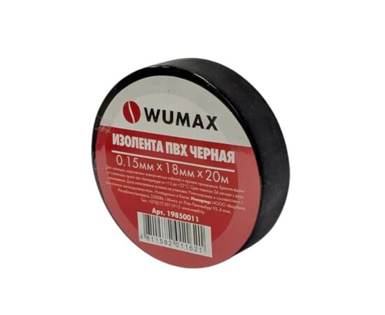 Изолента черная 18мм х 0,15 х 20м, WUMAX