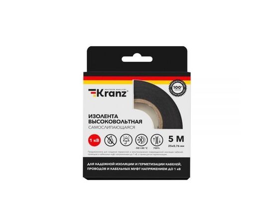 Высоковольтная самослипающаяся изоляционная лента KRANZ предназначена для создания первичной и восстановления поврежденной изоляции кабелей, проводов и кабельных муфт напряжением до 25 кВ, а также для их герметизации.