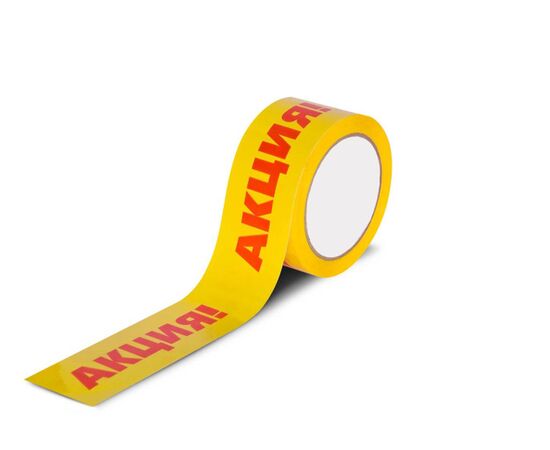 Упаковочная клейкая лента с надписью «АКЦИЯ!» предназначена для упаковки товара, участвующего в акции и пр.