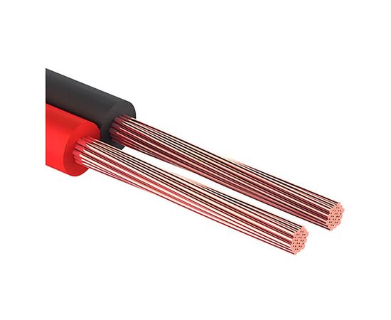 Кабель акустический PROconnect состоит из двух параллельных многожильных проводников в изоляции из поливинилхлоридного пластиката красного и черного цвета. Разделительное основание позволяет обеспечить разделение проводников кабеля без повреждения изоляции и оголения жил.