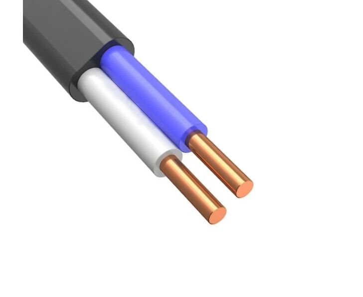 Силовой кабель с медными жилами, изоляцией и оболочкой из поливинилхлоридного пластиката пониженной горючести, с низким дымо- и газовыделением, без защитных покровов, в плоском исполнении.