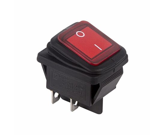 Выключатель клавишный 250V 15А (4с) ON-OFF красный с подсветкой ВЛАГОЗАЩИТА предназначен для коммутации электрических цепей переменного тока напряжением до 250В в условиях повышенной влажности. Клавишные (Рокерные) выключатели применяются в качестве комплектующих изделий различного электрооборудования (в сетевых фильтрах и удлинителях, аудио-оборудовании, блоках питания, электроустановках на различных производствах, автомобилях, и многих других местах). Защитная оболочка клавиши обеспечивает влаго и пылезащиту механизма переключения. Такой клавишный переключатель имеет два положения. Принцип действия основан на перемещении клавиши в одну из позиций. Для переключения в нужное положение требуется приложить некоторые усилия на клавишу. Монтаж осуществляется без применения винтов на плоских панелях толщиной от 0.8мм до 3мм. Подключение контактов осуществляется плоской клеммой 6.6мм, либо с помощью пайки.