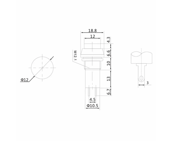 Установочный диаметр: 12мм;
